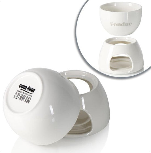 1 x pan, 1 x brander, 4 x vork. Materiaal: keramiek, roestvrij staal, kunststof.
