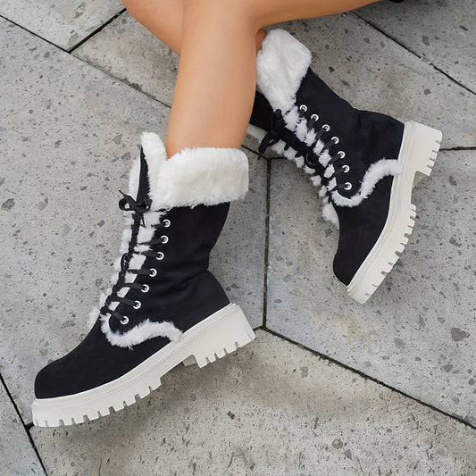 Anya | Warme, pluizige laarzen met platformzool voor dames
