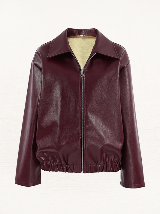 Bianca PU Leren Bomber Jack Dames | Winterjas Vrouw | Herfstjas Burdundy Rood